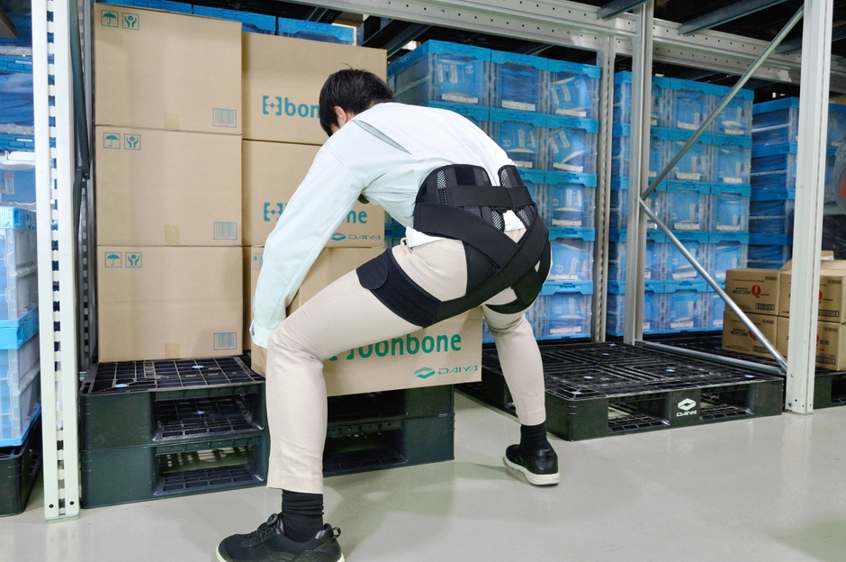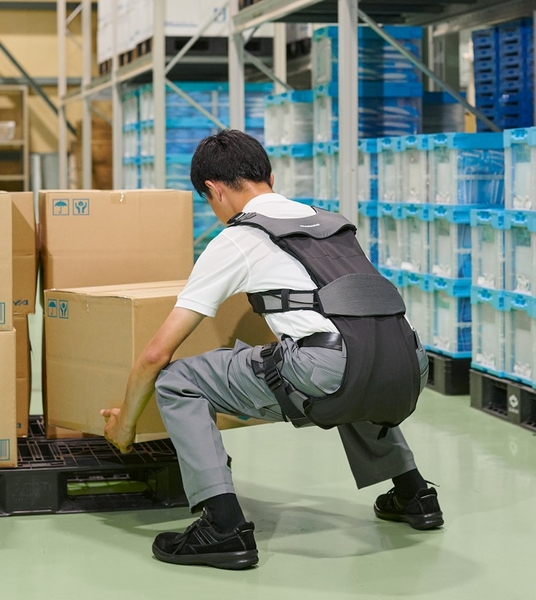 下半身だけでアシストするという構造により、様々な動きへの対応と、簡単装着を実現。下半身をしっかりサポートし、重量物の運搬など繰り返し行われる持ち上げ作業の負担を軽減します。