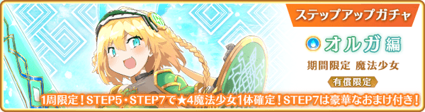 ・同時開催の『有償限定 ステップアップガチャ オルガ編』での★4魔法少女1体確定までのカウントは『期間限定 オルガ ピックアップガチャ』には引き継がれません。