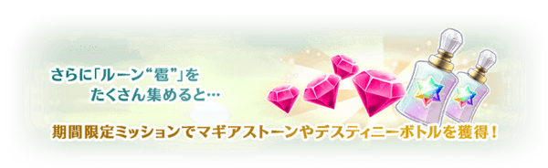 期間限定ミッションを達成することでマギアストーンや「オーバーリミッター」「デスティニーボトル」「レインボーオーブ」「マギアチップ」を獲得できます。