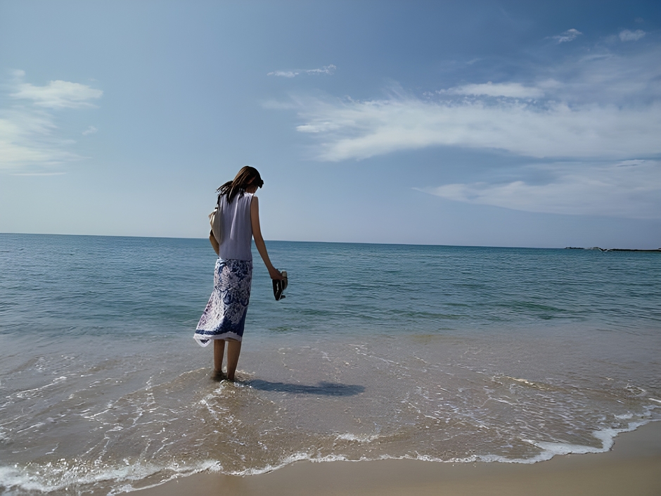夕暮れのひとときを、海岸でのんびり過ごすのもいいものですよ。
