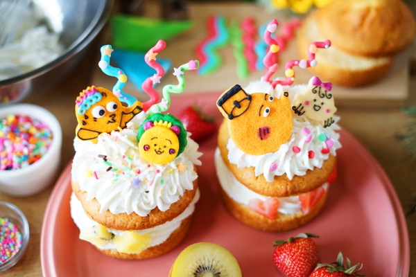 『コジコジとツッコミ次郎のマフィン』と『やかんくんとペロちゃんのマフィン』、2種のマフィンを、クリーム、クッキー、フルーツなどでデコレーション!出来上がったマフィンはそのままお持ち帰りいただけます!