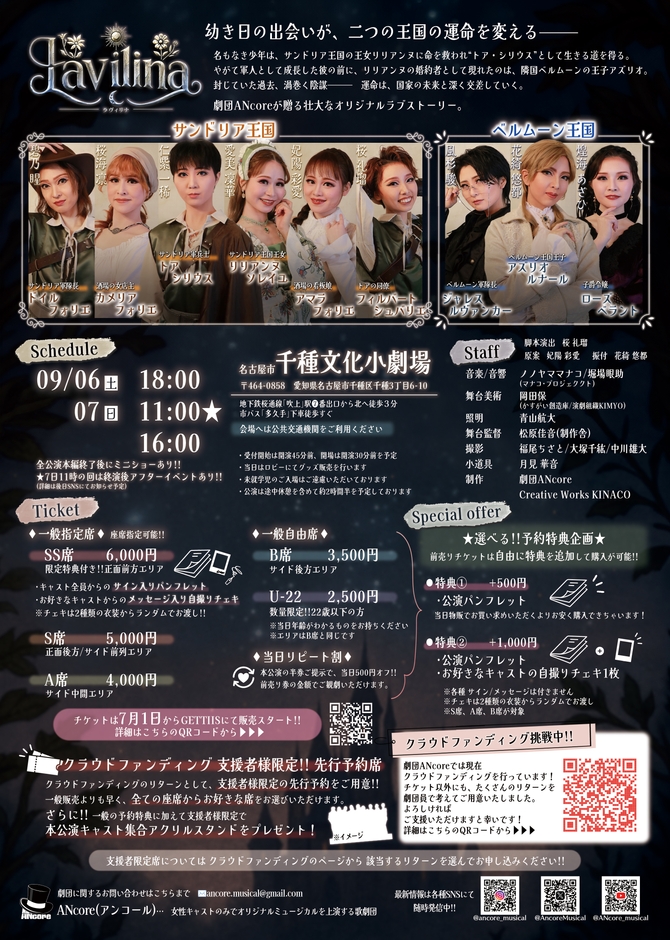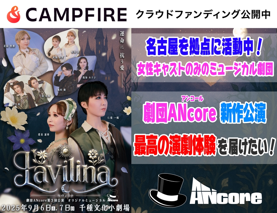 名古屋で活動中!女性のみでオリジナルミュージカルを上演する歌劇団【ANcore(アンコール)】 第3回『Lavilina -ラヴィリナ-』ビジュアル&ティザー映像解禁!!