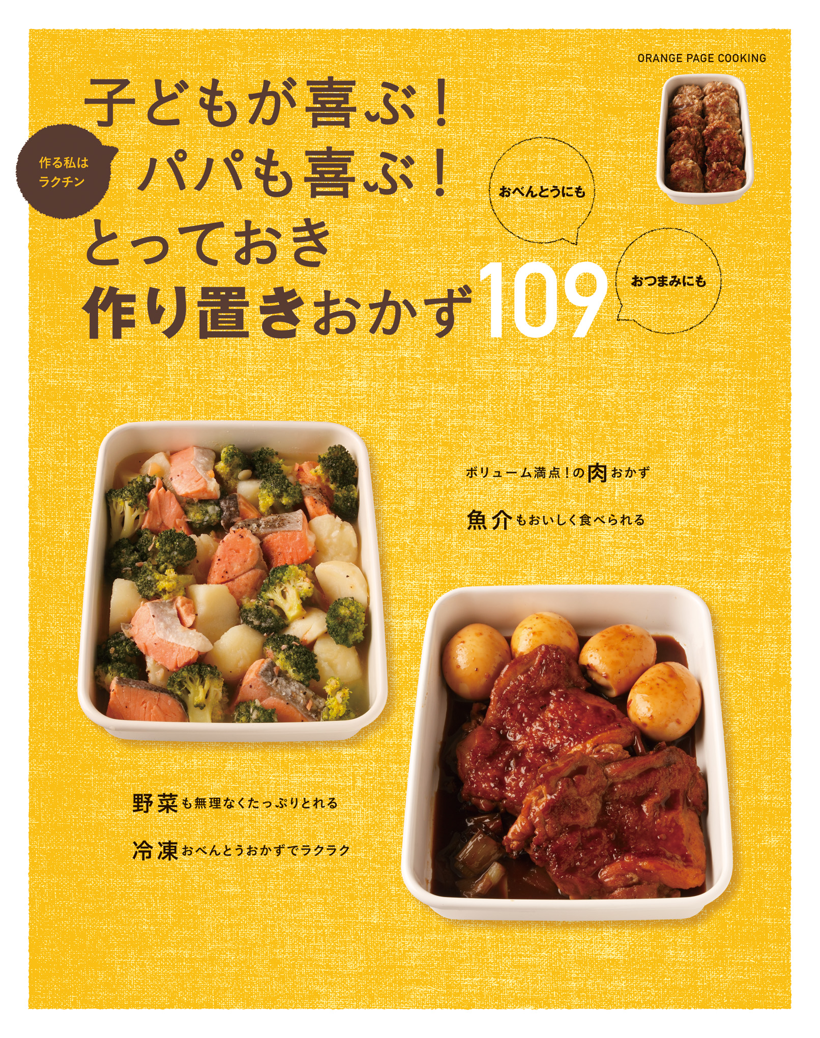 2016年2月22日 10:00忙しい人を応援するレシピを数多く提案してきた株式会社オレンジページ(東京都港区)は、毎日のおかずはもちろん、お弁当やおつまみにも重宝するレシピを109品収録した『子どもが喜ぶ! パパも喜ぶ! とっておき作り置きおかず109』を2月22日(月)に発売しました。