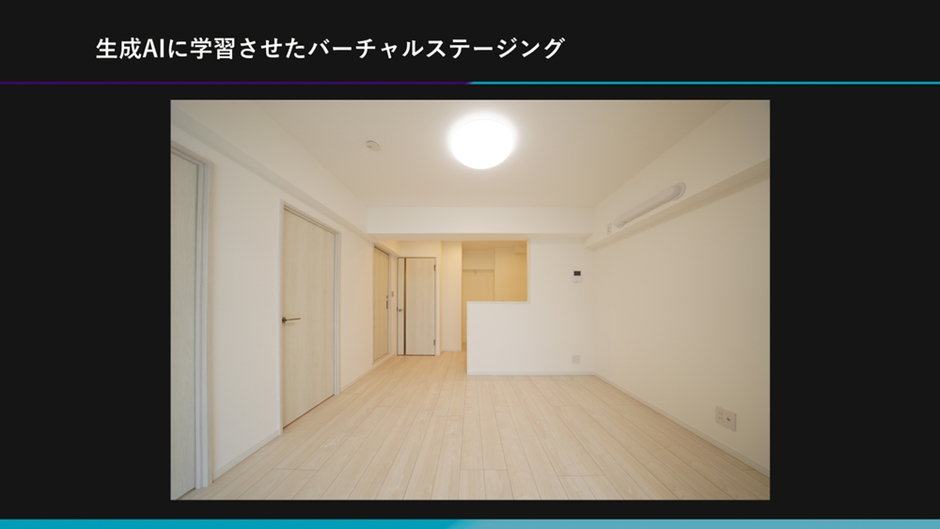 『KAITRY』が今、力を入れているのは、お客様から住まいを売却いただくだけでなく、当社グループが取扱う全国約1,000件のリノベーション物件をお客様へ販売する機能の強化です。販売物件の魅力を伝えることが重要と考え、生成AIを活用した『バーチャルステージング』のPoC(概念実証)を行いました。