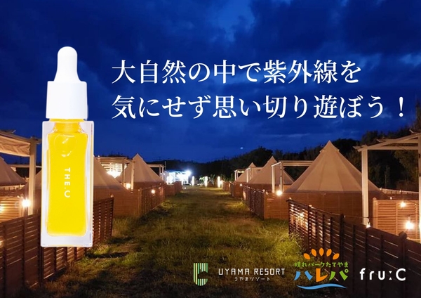 キャンペーン期間中は、フルーツ由来のビタミンC美容液「fru:C(フルーシー)」を一部の貸別荘・グランピングでご用意。