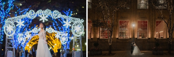 スタジオTVBではほかにも、“光のウェディングフォト”として大阪・神戸エリアのイルミネーションと撮影できるロケーションプランを複数ご案内しており、お好みのスポットでの撮影が叶います。