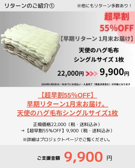 これは、1部のリターン紹介です。サイトにきていただければ、色々ございます。