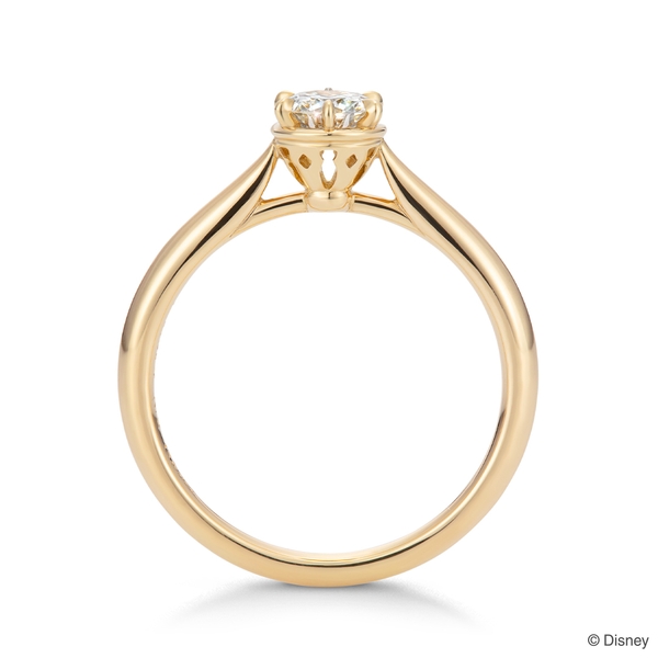 フォーマルに身に着けやすい一粒ダイヤの婚約指輪です。側面のデザインは、「アラジン」が「ジャスミン」と一緒に「魔法のじゅうたん」に乗って旅をするきっかけになった宮殿のバルコニーをイメージしています。
