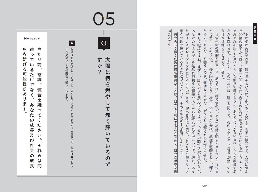 そして、このような「宇宙」への問いを著者と一緒に突き詰めていくと、「モノゴトの本質」に近づく「宇宙思考」が見えてきます。