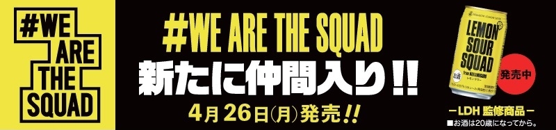 「甘くなく、飲み飽きしない」をコンセプトにEXILEメンバーが監修して作りあげた“LEMON SOUR SQUAD”は、レモンの皮まで丸ごと絞ったような濃厚なレモン感が特徴のレモンサワーです。株式会社LDH JAPANと宝酒造株式会社と株式会社ローソンの3社により共同開発され、2020年1月1日の発売時には販売本数が1カ月で100万本を突破した大ヒット商品。全国のローソン店舗(ローソンストア100を除く)にて好評販売中です。