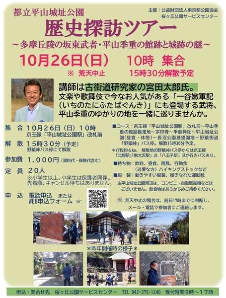 10月26日(日)開催! 【歴史さんぽ】平山城址歴史探訪ツアー ~多摩丘陵の坂東武者・平山季重の館跡と城跡の謎~
