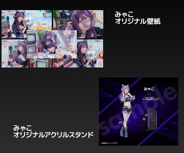 みゃこ LEVEL∞ コラボゲーミングPCをご購入頂いた方にもれなく、みゃこオリジナル壁紙とアクリルスタンドをプレゼントいたします。