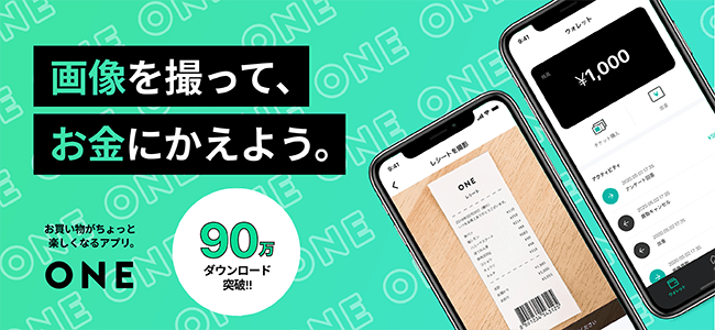 「ONE」(https://b.wow.one/)はレシートをはじめ、様々な画像やアンケートのデータをONEユーザーから買い取るサービスです。アプリ内で貯めたお金は好きなタイミングで出金でき、出金先は国内ほぼ全ての金融機関に対応しています。