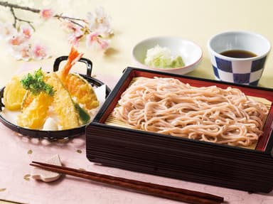 特選素材の鯛は、良質の真鯛が多く水揚げされる瀬戸内海産です。上品な脂がのり、ふっくらとした真鯛の美味しさを引き立てるせいろ御飯や天ぷらで提供します。ジューシーで柔らかな肉質の青森県産美保野ポークは生姜焼きで素材の味をお楽しみいただけます。また、そばに桜の葉を練り込んだ「桜そば」は、香り豊かな桜そばと春野菜の天ぷらで春の息吹を感じられる一品です。