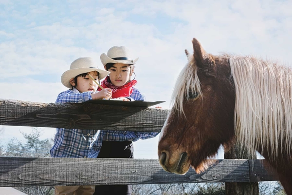 夏休みの宿題の定番である自由研究は、小学生の子どもをもつ親の90%が「不安に思う」と回答しています。リゾナーレ八ヶ岳が位置する山梨県北杜市小淵沢は、8か所の乗馬クラブや馬術競技場があり、約200頭もの馬が飼育されています。そんな「馬のまち」に位置する当リゾートでは、「馬」をテーマに馬の特徴を学び、自由研究としてまとめるプログラムを提案することに至りました。自由研究の基本「予習・体験・まとめ」の3ステップに沿い、馬場での体験を通して馬について学びます。