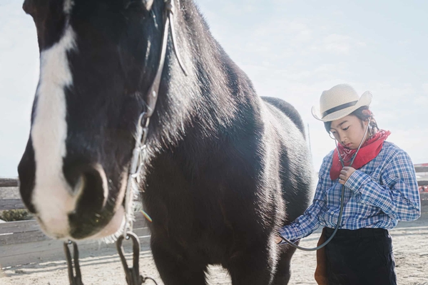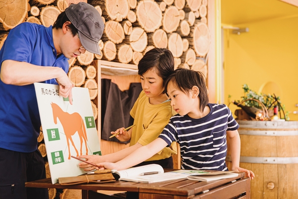 本プログラムでは、初めにホテルスタッフと一緒に馬のからだの仕組みや特性などを予習します。例えば馬は、耳の動きや声のトーンなどからだの様々な部分を使って感情や健康状態を表すのが特徴です。その様子を観察してコミュニケーションを取ることが大切であるということを学びます。