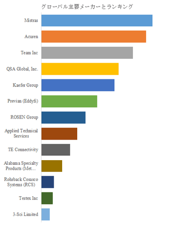 グローバル市場を牽引しているのはMistras Groupであり、非破壊検査(NDT)と構造健全性モニタリングの分野で培った技術をCUI領域に応用し、高信頼性のセンサー・ソフトウェア統合システムを展開している。同社は大規模プラント向けの包括的監視ソリューションを提供し、業界標準の地位を確立している。次いでAcurenおよびTeam Incが市場の中核を担い、それぞれ検査サービスとデータ解析の高度化を武器に競争力を維持している。Previan(旧Eddyfi Technologies)やROSEN Groupなども、高感度電磁誘導・超音波技術を用いた高精度測定装置を開発し、欧米市場で存在感を示している。TE Connectivity、RCS、Metal Samplesといった企業は、センサー素材・耐環境設計に強みを持ち、インフラ向け長期モニタリングソリューションを提供している。一方、3-Sci LimitedやTestex Incなどの新興企業は、低コスト・モジュール型のシステムを開発し、中小規模プラントへの普及を後押ししている。全体として、上位数社による寡占構造が維持されつつも、IoT・AI技術を軸にした新興プレイヤーの参入により、サービス多層化と価格競争が同時進行する段階にある。日本市場では、既存の非破壊検査事業者と設備メーカーの連携が進み、保守・点検サービスと一体化した導入モデルが形成されつつある。