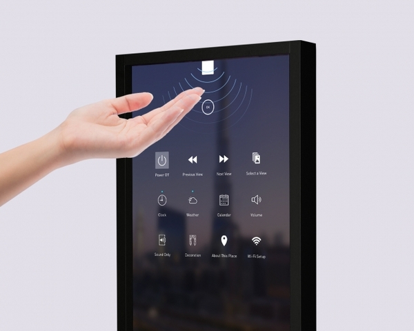 Atmoph Windowの上部に設置されている近接センサーに手をかざすだけで、音量調節、電源のON/OFF、風景の切り替えなどの一連の動作が可能になりました。これにより、一度Wi-Fi設定が完了すれば、今後はスマートフォンやインターネットのない環境下でも、窓の操作ができるようになりました。これまで、クリニックやオフィスなど複数人で窓を操作したい場面や、初期設定後にWi-Fiがない場所でも使用したいというお声を多数いただいていましたが、今回のリリースでこれらが可能になります。