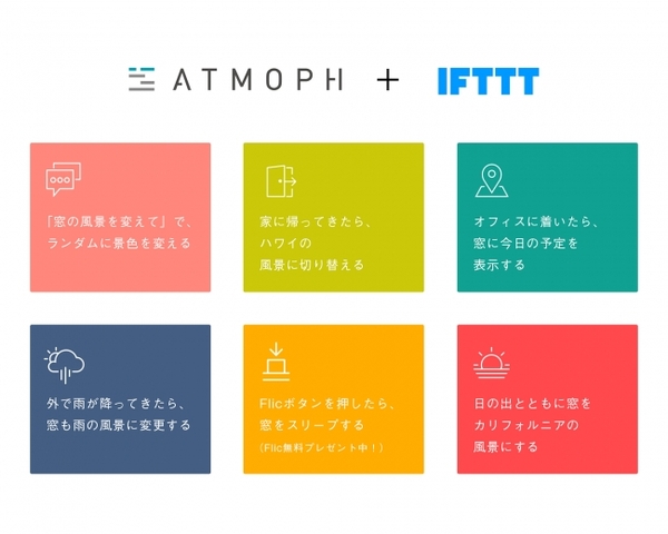 スマートなデジタル窓Atmoph Window(アトモフウィンドウ)を開発するアトモフ株式会社(本社:京都市中京区、代表取締役:姜 京日)は、本日4月5日、Atmoph Windowがプラットフォーム連携サービスのIFTTT(イフト)に対応することで、Google Homeなどのスマートスピーカーからの音声操作をはじめ、外の天気や気温と連動した景色の自動切り替えなど、さまざまな操作が可能になったことをお知らせします。また、本体の近接センサーを活用した操作のユーザーインターフェース(UI)もあわせて刷新し、手をかざす動作だけで、風景の選択や音量の調整、カレンダー、時計や天気の表示切り替えなどもできるようになりました。これらにより、Atmoph Windowを操作する手段の幅が格段に増え、家庭やオフィス、レストランやホテルなど様々な環境に適した操作が選べるようになりました。