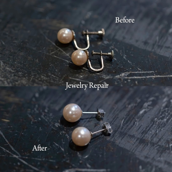 ピアス加工のご要望もいただいております。お気に入りのジュエリーをピアスとして生まれ変わらせることで、より幅広いシーンでお楽しみいただけます。
