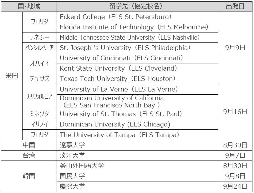 ●近畿大学国際学部生539人が、米国、中国、台湾、韓国での留学に出発