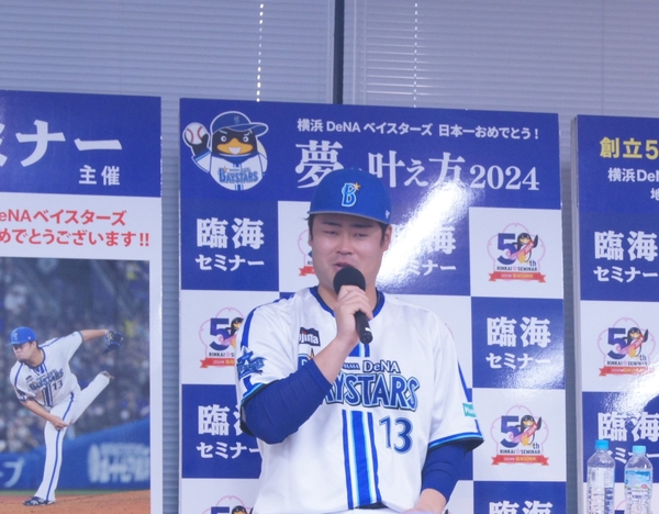 横浜DeNAベイスターズのオフィシャルスポンサーである臨海セミナーは、勉強・受験に関することだけに留まらない教育活動の一環として、総合司会にtvkアナウンサーの根岸佑輔さんを招き、横浜DeNAベイスターズの選手たちによる特別授業を「横浜DeNAベイスターズ日本一おめでとう!夢の叶え方2024」と題し、子どもたちを対象に開催いたしました。今回講師として登場していただいた横浜DeNAベイスターズの選手には、「いつからプロ野球選手を志したか」、「上手くいかない時期をどうやって乗り越えてきたか」等、野球人生のなかで培ってきた「夢の叶え方」を、子どもたちに授業形式で伝えてもらいました。