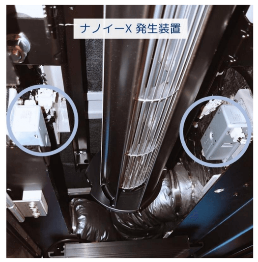 パナソニックが開発したナノイー※1は、空気中の水分に高電圧を加えて生成するナノサイズの微粒子イオンで、さまざまな物質に作用しやすいOHラジカルを含んでいます。このOHラジカルの生成を従来比10倍に高めたのがナノイーXで、脱臭※2や、菌※3・アレル物質の抑制※4など多様な効果を有しています。昨今の世界的な空気質への関心の高まりを背景に、より清潔・快適な空間を提供する技術として、モビリティ空間、商業施設やホテル、オフィス、学校などさまざまな施設・公共空間での採用が増加、グローバル累計出荷台数は昨年1億台※5を突破しました。
