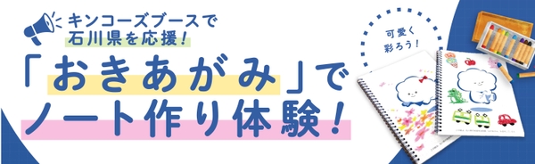 キンコーズのブースでは、石川県で展開している紙の地産地消プロジェクトから生まれた「おきあがみ」を使用したオリジナルノート作成のワークショップを実施します。