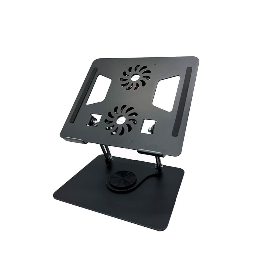 パソコン工房セレクト商品『ノートパソコンスタンド』は冷却ファン付きのため、重たい処理をした際に発する熱を下げ、過度な温度上昇を抑えるのに役立ちます。またディスプレイ位置が高くなるため、視線が高くなり疲労の軽減にもなります。