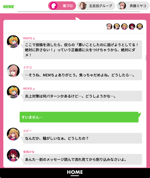 プレイヤーは苺プロ所属の俳優になりきって出演作の台本の読み合わせをしたり、アクアやB小町とグループチャットでやりとりしたりと、【推しの子】の世界の中で仲間たちと協力して芸能界に立ち向かいます。