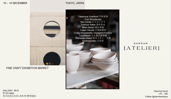 12月のホリデーシーズンに向けて立ち上げられるDAMDAM [Atelier]は、素敵な作品に焦点を当てた初めての展示マーケットです。