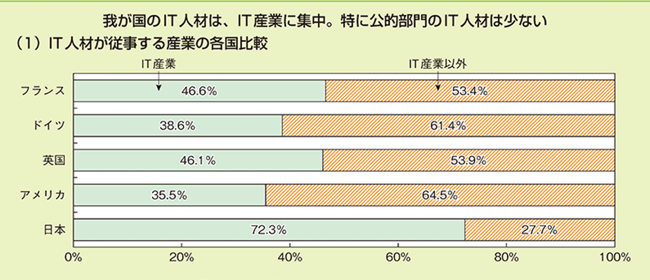 (内閣府「令和2年度 年次経済財政報告」IT人材が従事する産業より)