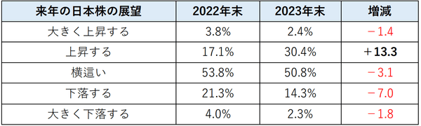● 2024年の日本株は「上昇する」が「下落する」と考える人の2倍
