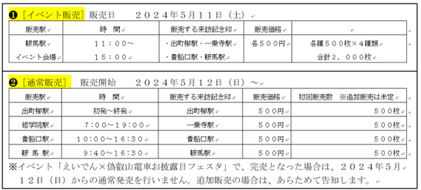 ※イベント「えいでん×偽叡山電車お披露目フェスタ」で、完売となった場合は、