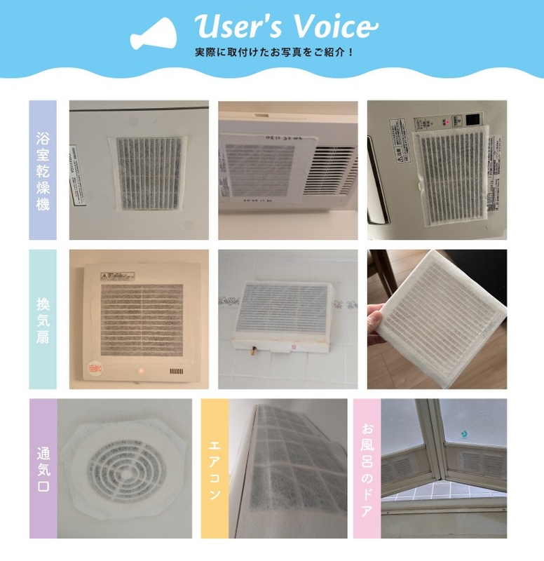 実際にモニターの皆さまから届いた取付け写真を一部ご紹介します!「好きな場所に貼れる」「家じゅうのホコリ対策に便利!」など、さまざまな場所で活躍しています◎