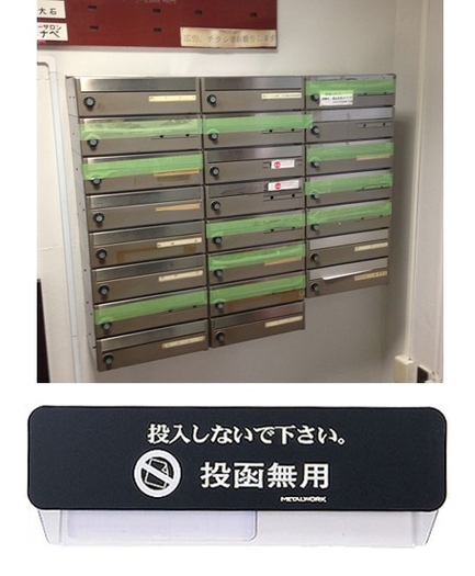 また、DM投函防止用の「空室部分のメールボックスのガムテープ」をやめて透明なテープを貼るか、投函禁止のプレートを買って設置してみるとか、「斜めに傾いている床マットをきちんと置きなおす」とか、こういうところを見直してみてください。