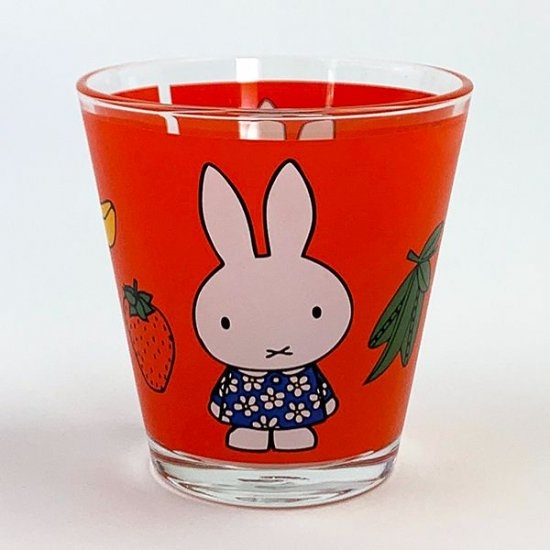 個人的に一番のオススメは、オレンジカラーのグラス。お気に入りの花柄のワンピースを着ておめかし中のミッフィーが、オレンジの背景によく映えています。