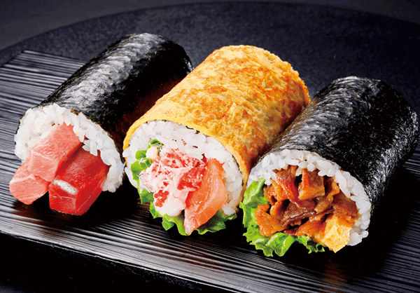「招福 海鮮節分太巻」「七福 洋風節分太巻」「幸福 和風具だくさん節分太巻」が入った、海鮮・洋風・和風の食べ比べができるハーフサイズのセット。