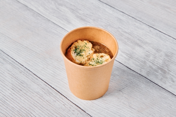 ・サーカスのまかないオニオングラタンスープ ¥600 (写真中)