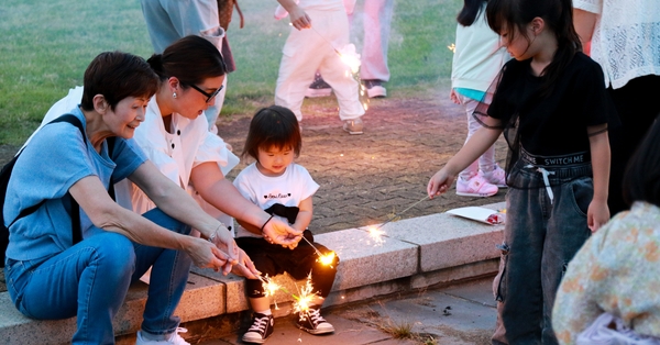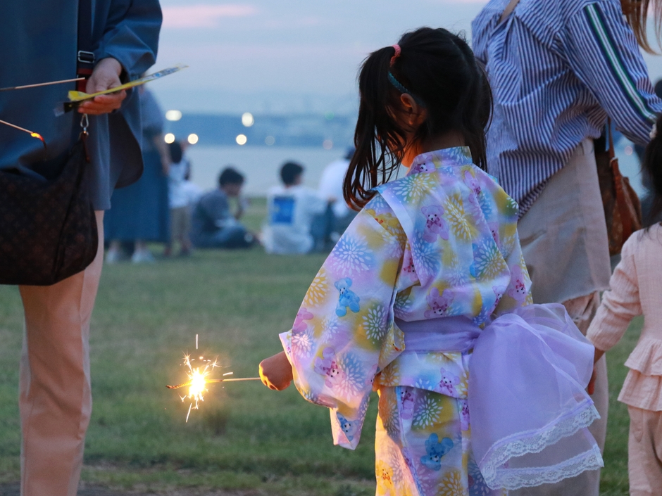 家庭用手持ち花火と、花火師による小規模打ち上げを組み合わせた幻想的なショー。火薬の香りと音に包まれる、日本の夏の原風景を再現したプログラムでやさしい夏の夜に。また、会場内では手持ち花火を販売致します。プラスチックを使わない環境配慮型のオリジナル花火はデザイン性にも優れ、煙が少なく、服にもにおいが付きにくいため、小さなお子さまや家族連れにもおすすめです。