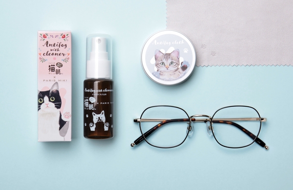 コロナ対策でマスクの着用機会が増え、「マスクをするとメガネがくもって困る」というお悩みは花粉症以外の人でも抱えるようになりました。レンズのくもり止めグッズを製作するなかで、窓の結露で遊ぶ猫をヒントにメガネレンズのくもりをフキフキしてくれる猫をイメージしながら、今回はくもり止めスプレーとくもり止めクロスを開発しました。