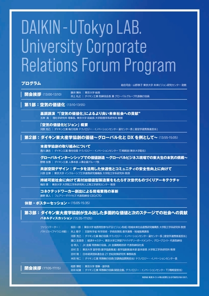 【ダイキン】ダイキン工業、東京大学 産学協創フォーラム『「空気の価値化」が創生する未来の社会と技術』を開催