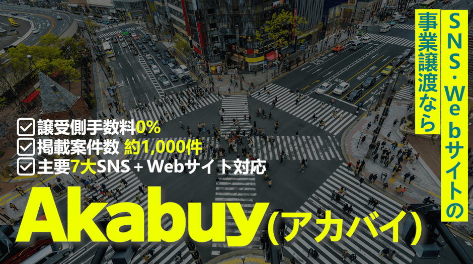 合同会社マイアジアエンターテイメント(所在地:東京都小金井市本町6-9-39、代表:三木慎太朗)は、SNSアカウントの譲渡・引き継ぎに特化したM&Aプラットフォーム「Akabuy(アカバイ)」の本格展開を開始いたしました。Instagram・YouTube・X(旧Twitter)・TikTok・公式LINEなど主要SNSのアカウント引き継ぎに対応しており、譲受側(購入者)の手数料は0%、譲渡側の手数料も5%と業界最安水準です。