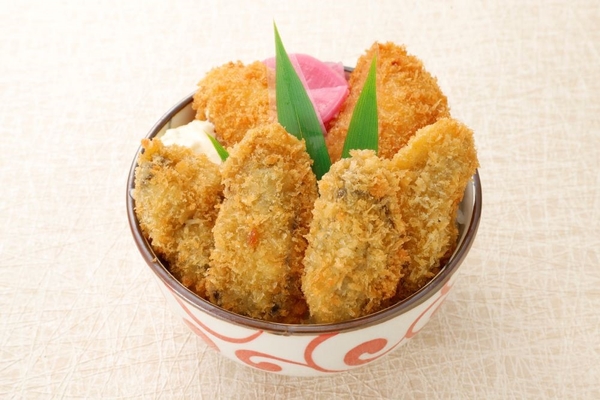 ②能登半島地震復興応援として能登産牡蠣フライとふぐ天ぷらの記念丼ぶりや輪島朝市弁当を