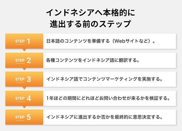 具体的なインドネシア仮想進出支援のステップは下記です。