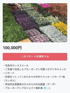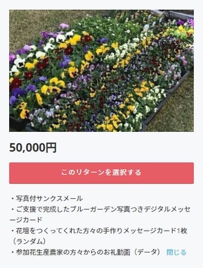 ご支援は1,000円から100,000円まで選ぶことができ、金額に応じて返礼があります。
