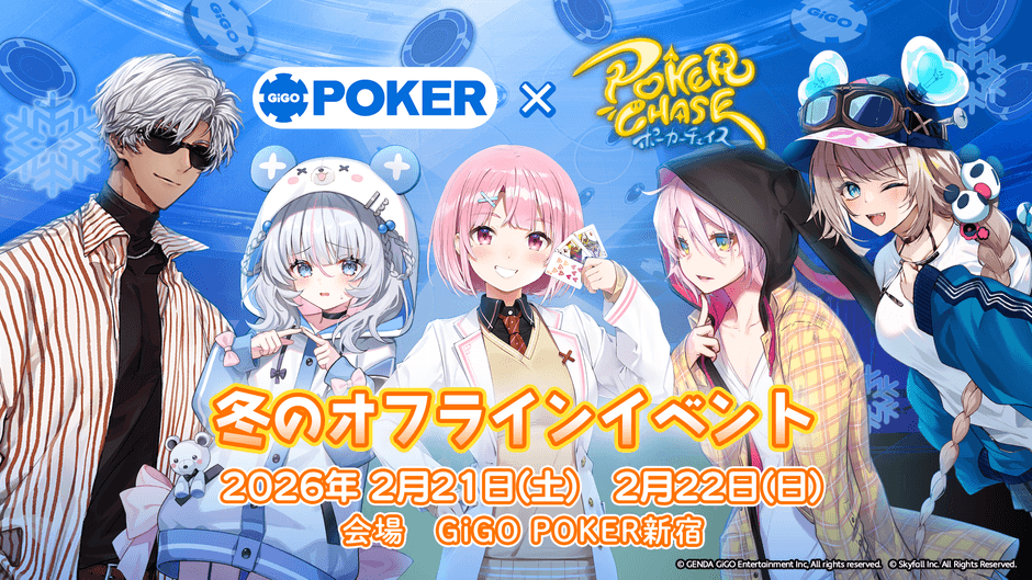 さらに、2026年2月21日(土)・2月22日(日)の2日間では、「GiGO POKER新宿」で『ポーカーチェイス』オフラインイベントも開催いたします。