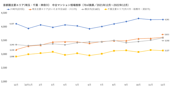 ■首都圏主要エリア 中古マンション相場推移(2021年12月~2022年12月)