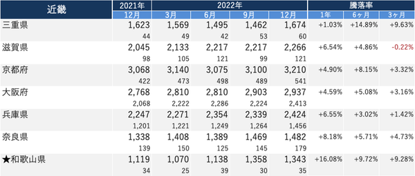 ※2022年12月の件数が50件未満の県については、算出根拠となるデータ数が少ないため★をつけて掲載。