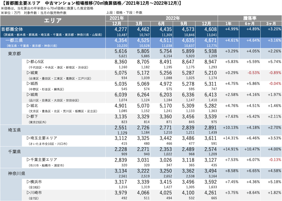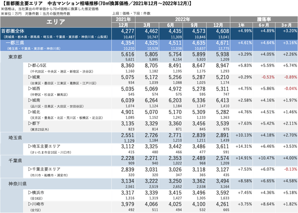 「マンションレビュー」2022年12月 全国主要エリア/47都道府県 中古マンション相場推移を発表